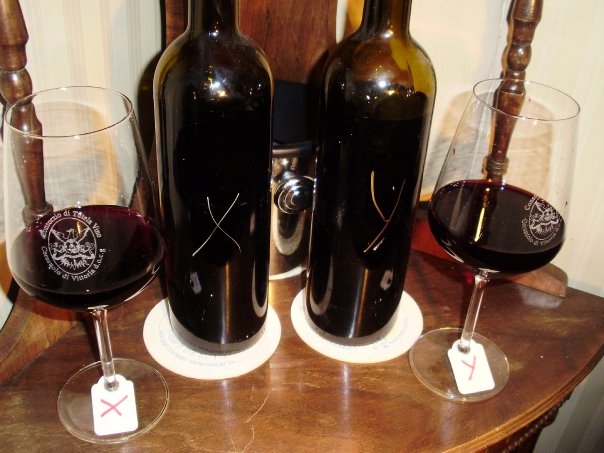 All’indomani dopo avere lasciato i due bicchieri con un dito di vino all’aria per tutta la notte ed’oltre, ed’esattamente il 23 Ottobre alle ore 12,00, prendo X a bicchiere fermo lo metto sotto il naso e sento: marasca e una sottile nota del sentore di sacrestia (incenso), interessante.