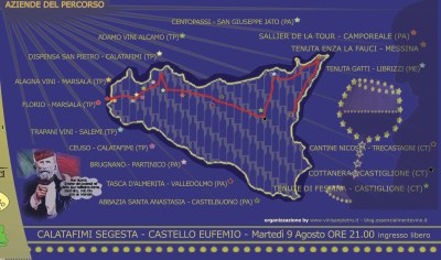 Si è pensato bene di abbinare ad ogni tappa del percorso chefecero i Mille una cantina di quei stessi territori ove la presenza delleggendario Generale innescò sommosse e movimenti popolari che diedero ungrande impulso alla conquista della Sicilia.
