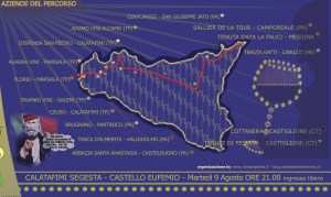 L’evento degustativo si svolgerà il 9 Agosto2011 nella suggestivacornice ricca di bellezze monumentali e paesaggistiche: il Castello Eufemio di Calatafimi Segesta, da dove si potrà ammirare un panoramamozzafiato verso la valle del Krimiso, Mango, Segesta e Pianto Romano,apprezzandone la bellezza del territorio sulle note jazz ed un calice di vino.Durante la serata sarà possibile ammirare le stelle attraverso unastrumentazione professionale che proietterà le immagini della volta celeste inuno schermo, immagini ad alta risoluzione commentate in diretta da un espertoastronomo. Artisti di strada ci rallegreranno con la loro giocoleria.