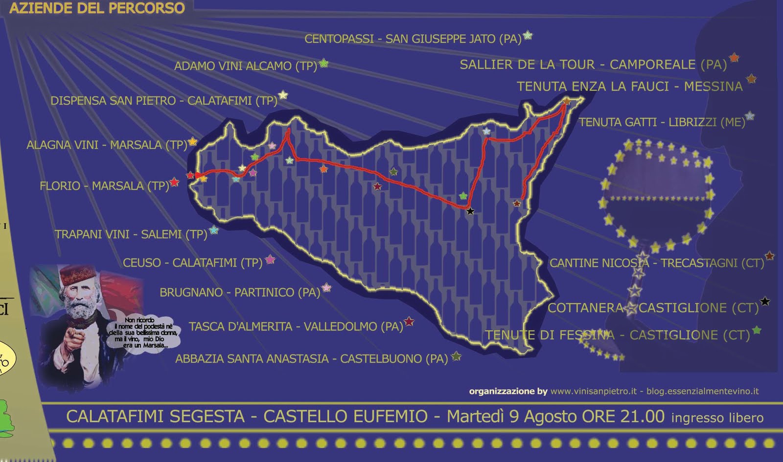 La scelta delle aziende e dei vini partecipantiche si snodano sul percorso Garibaldinoda Marsala a Messina, è stata curata dall’Azienda Dispensa San Pietro www.vinisanpietro.com e da Maurizio Aguglia – blog.essenzialmentevino.it – che presenteranno per ogni azienda leschede tecniche dei vini partecipanti con la rispettiva divulgazione edegustazione.